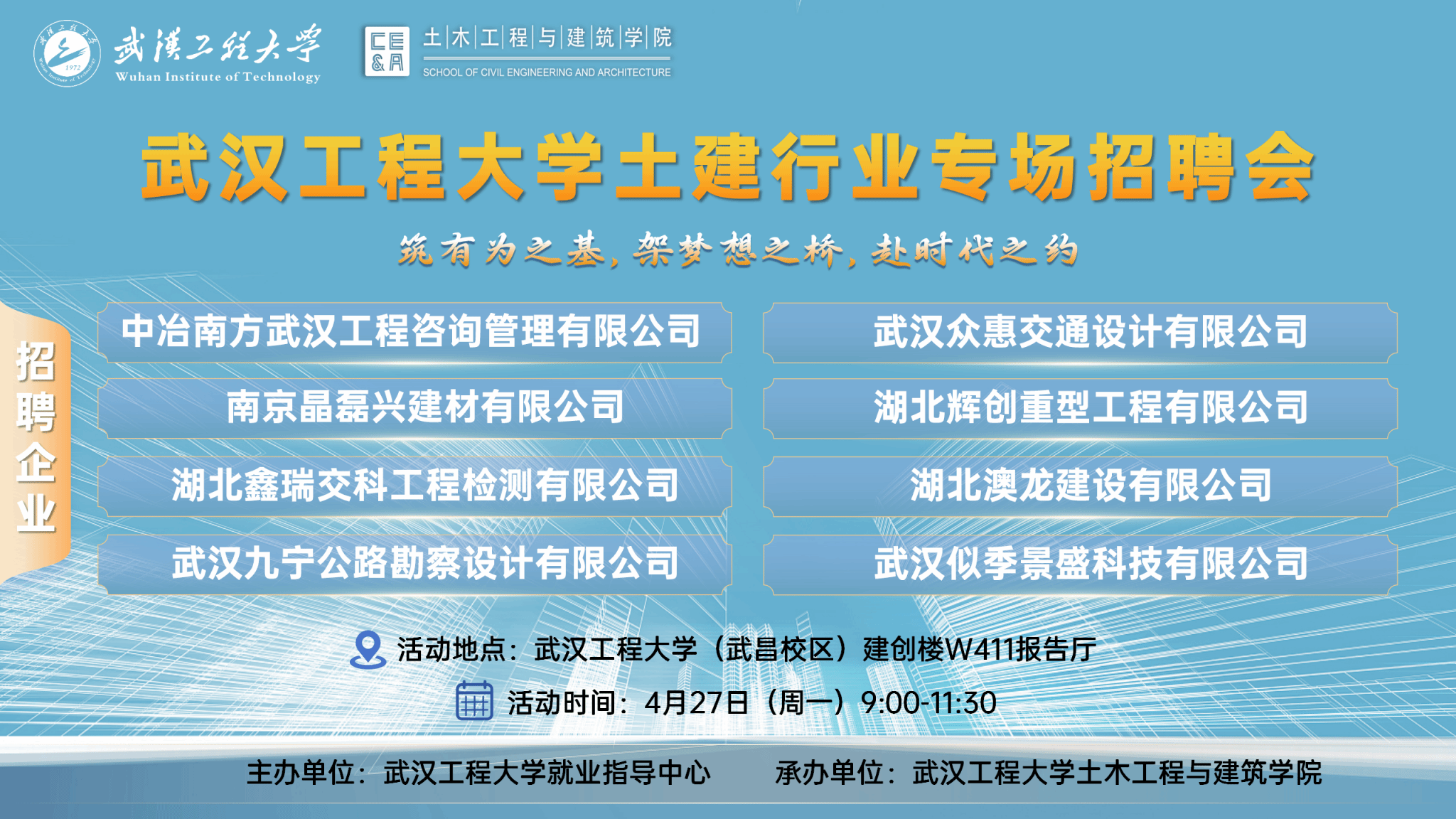 (通讯员 冯豪) 为抢抓春季招聘关键窗口期,精准服务学院2026届毕业生求职需求,4月27日上午,伟德国际1946源于英国2026届“土建行业”毕业生专场招聘会在武昌校区建创楼W411举行。